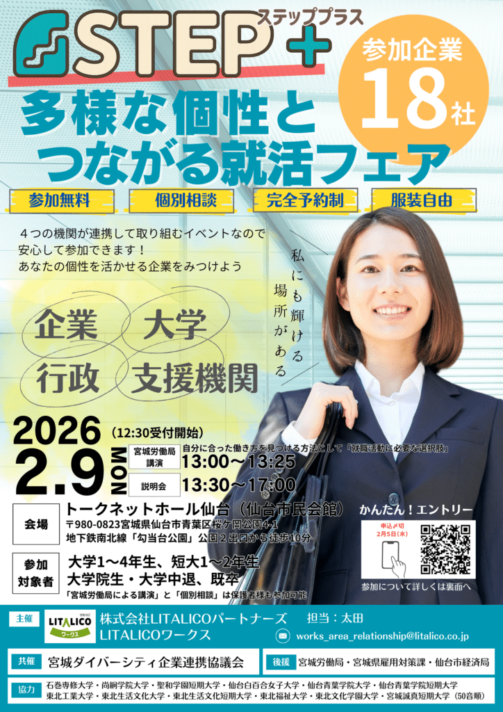 ※「宮城労働局による講演」と「個別相談」は保護者様も参加可能